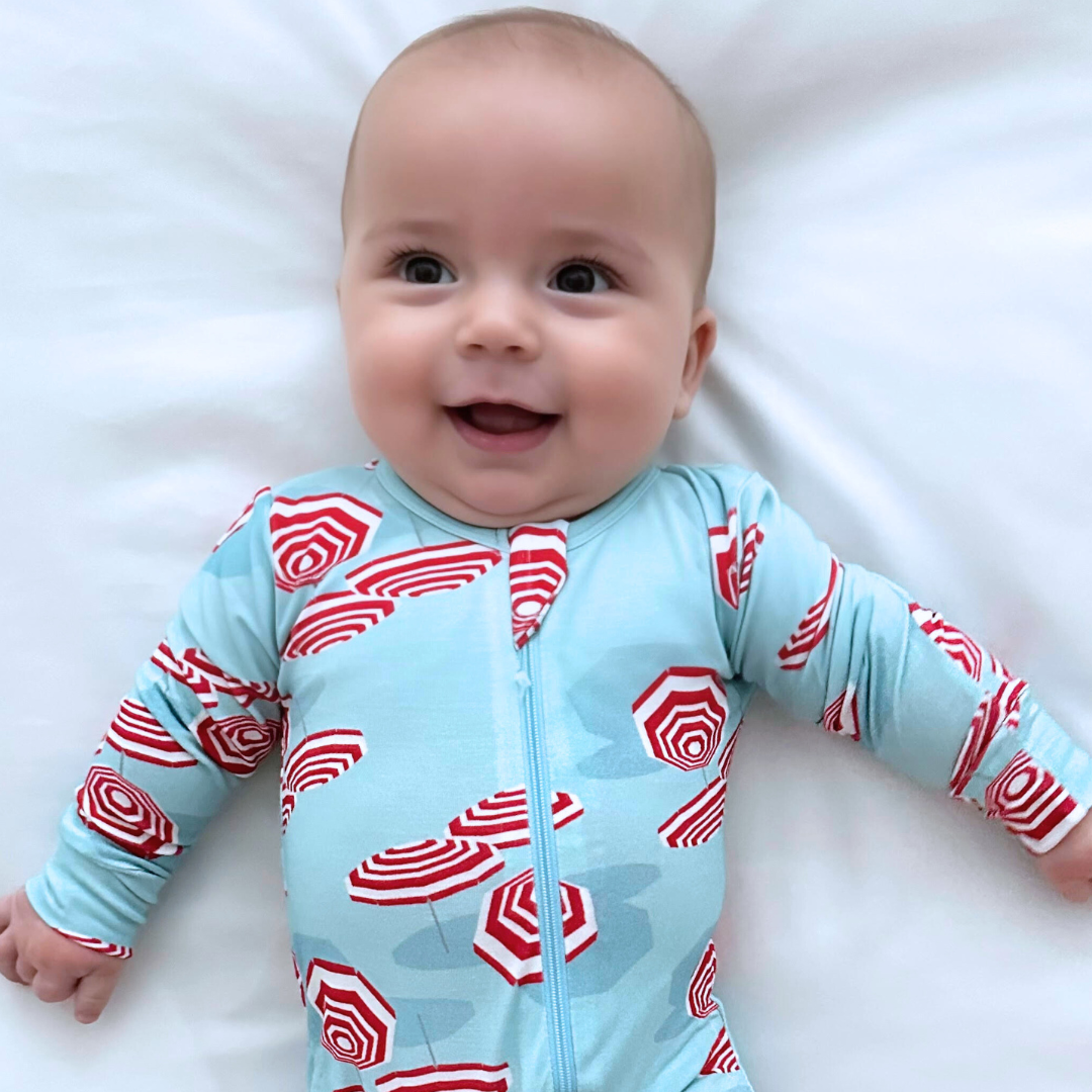 Upgrade your toddler's sleepwear with our super soft bamboo two-piece set! Our Beach Club Coral Surf Blue pajama set is inspired by the iconic beach umbrellas of the Amalfi Coast of Italy with its bright blue and coral beach umbrella print. This unisex color combination is perfect for the Italy/beach lover in your life! Our top selling birthday gift, give the gift of a good night's sleep!